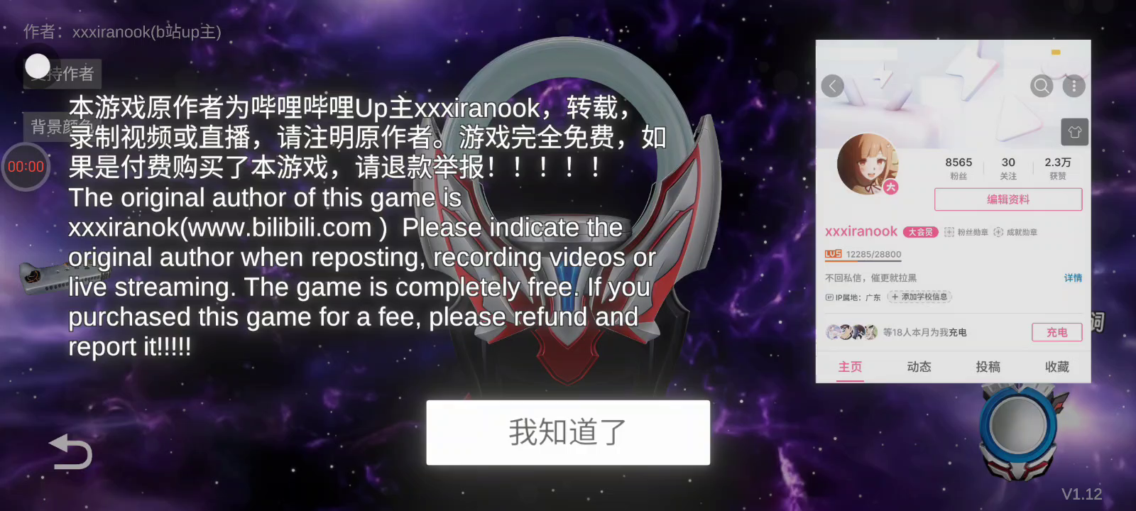 12月23日更新内容: 1.新增设置可切换旧版本tv形态融合方式 2.新增高斯月神与日冕融合日蚀 3.修复部分bug 4.提高拖动灵敏度上限 ----------- 欧布圆环是由作者xxxiranook制作的玩家自制游戏 制作进度为15% 有街机形态