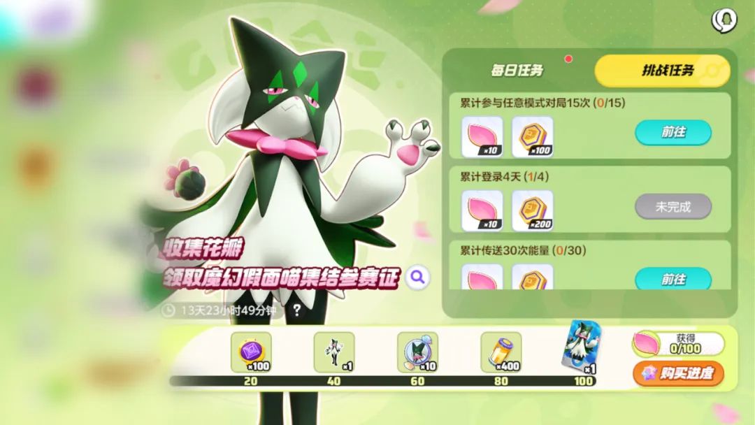 同贺新春,深受训练家喜爱的“人气魔术师”魔幻假面喵将于2月5日登场!训练家可通过完成每日/挑战任务收集花瓣,免费兑换魔幻假面喵参赛证等奖励。亿奥斯管理局还准备了许多活动迎接魔幻假面喵,敬请期待吧~