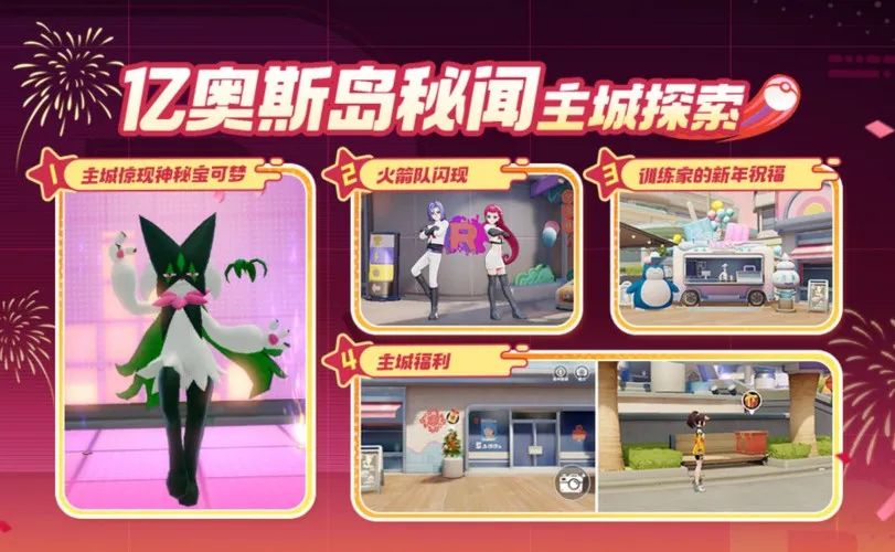 免费领取了火箭队时装、妙拍机新动作、新背景,别忘了在1月30日后带上宝可梦前往主城妙拍机拍一张全新纪念照呀!