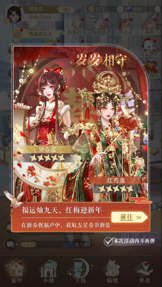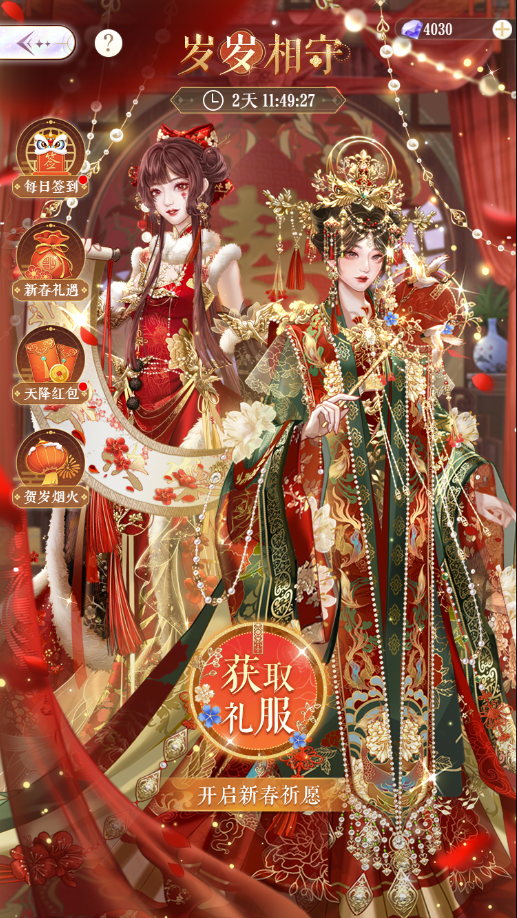 限时礼包出售中,可购买五星春节礼服抽奖道具【溢彩明烛】以及烟花筒,一起点燃贺岁烟火吧!