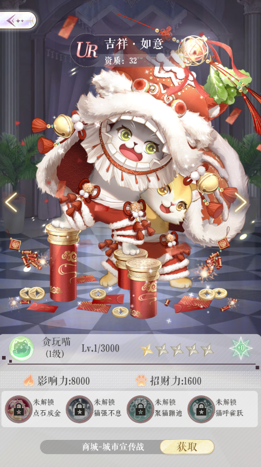 最爱猫猫奖(有参与即可获得!)星钻*200,R喵灵*20,SR喵灵*5,SSR喵灵*2,UR喵灵*1