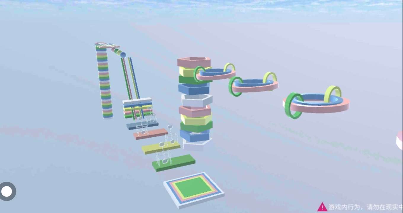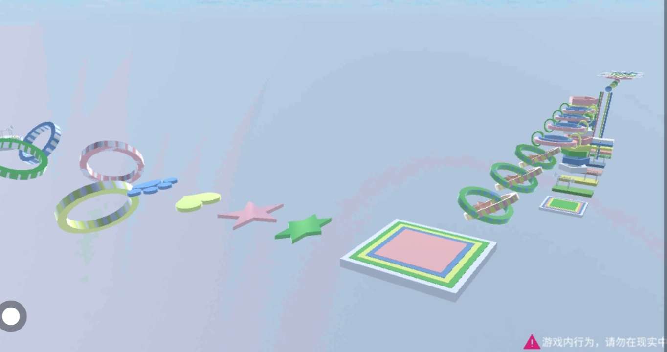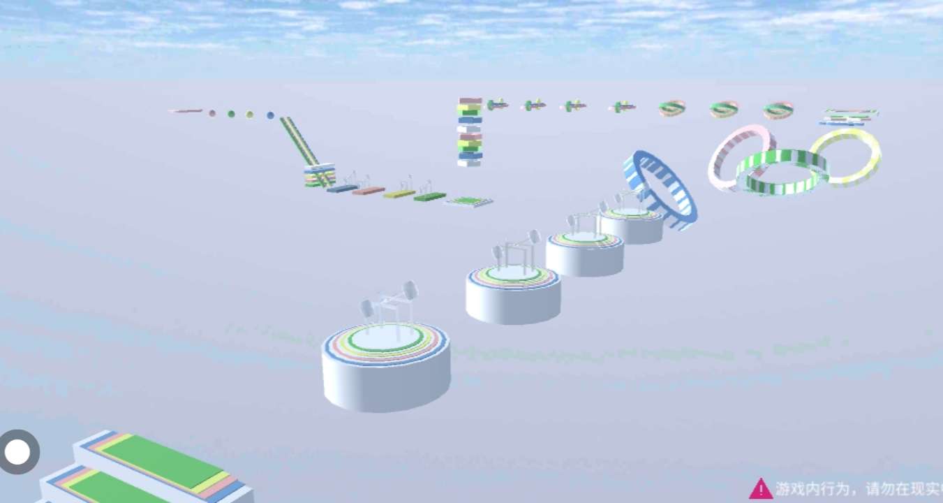 再接着是跳圆管 两个大的是开了物理👀🌱 然后跳下五角管来到下面 映入眼帘的是一块木板上面有小摆锤☁️两个在左 两个在右🌷 随后是再次到上面(这里不知道为什么穿模了🥺) 躲避圆管里的锤子🔨跳下去就打卡成功了👍🏻✅ 结尾是公园