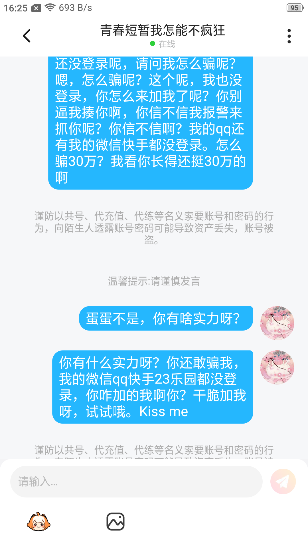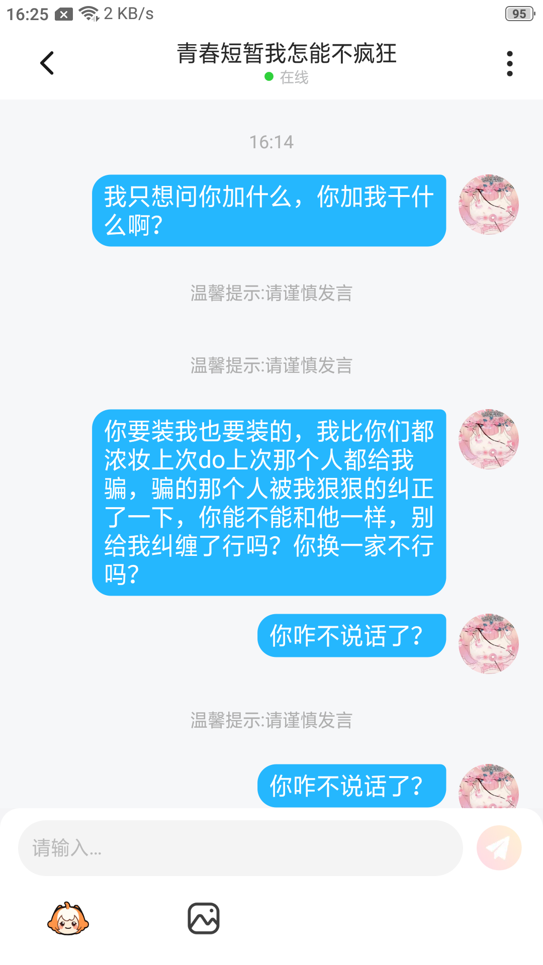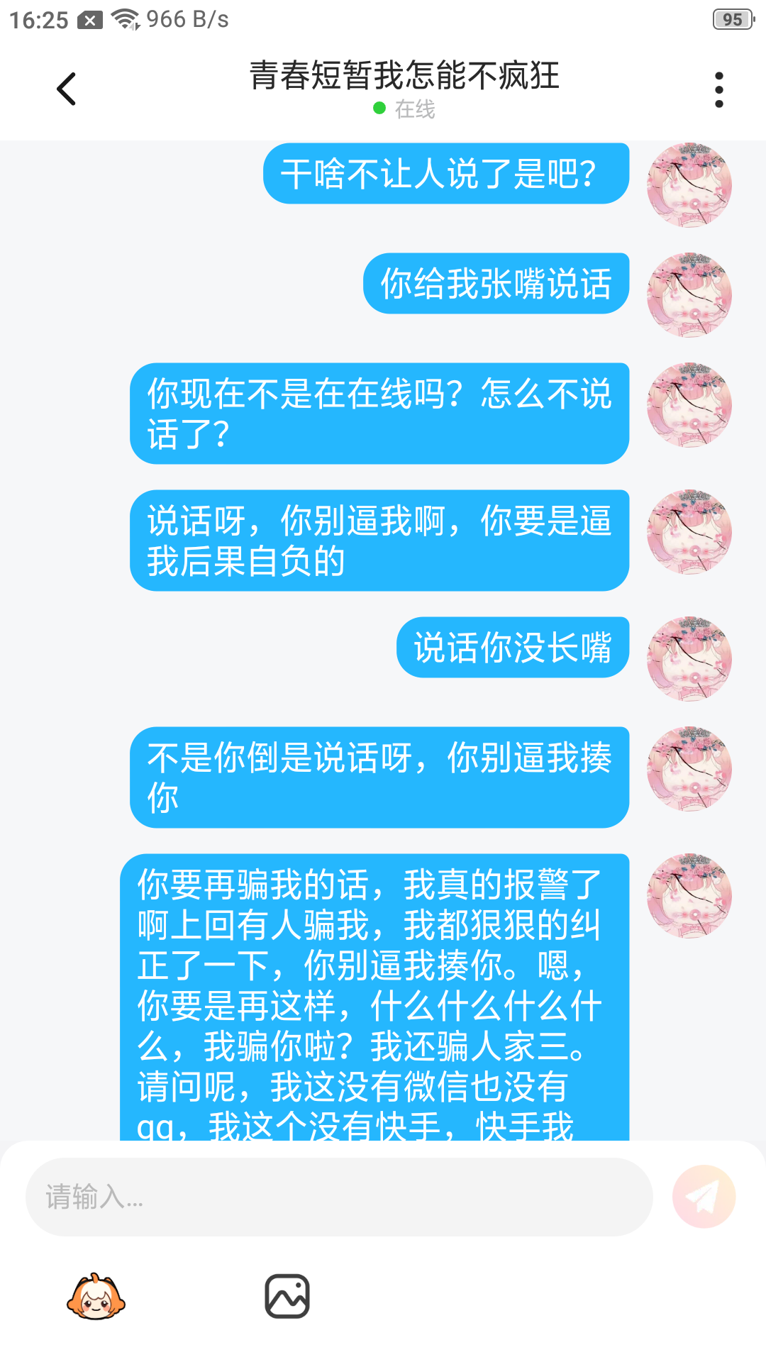 现在被我说的哑口无言了吧,他光骗我不骗别人,我真无语了,被我弄得哑口无言了,前面一段呢被我给删掉了,