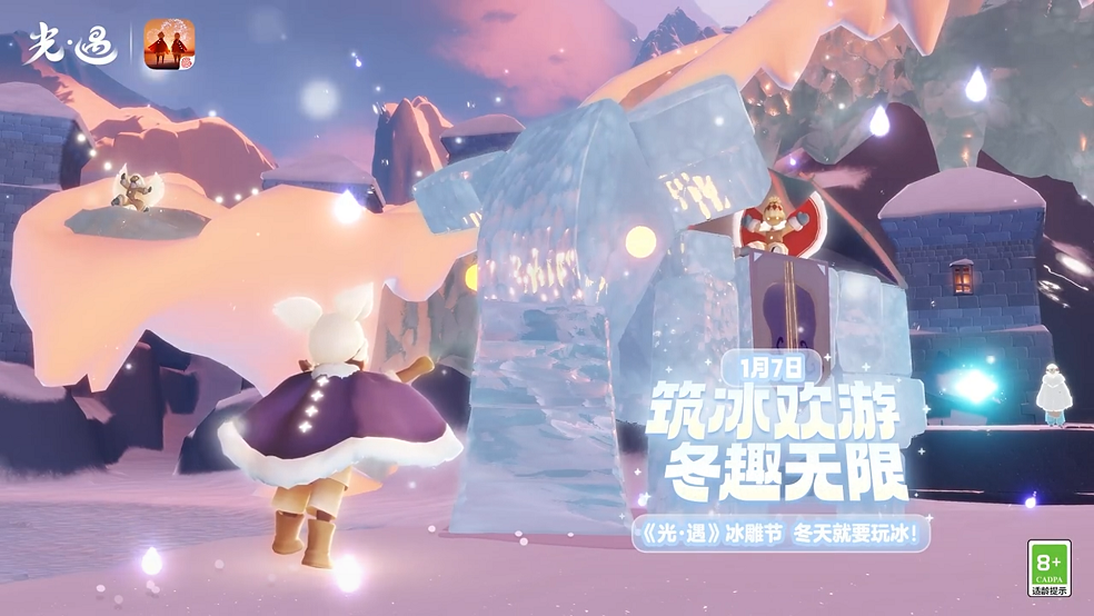 《光·遇》冰雕节开启,旅人们创作了大爱心、小雪人的家、冰原兽等诸多创意冰雕作品,玩家可使用分享码进入对应共享空间,沉浸式体验这些趣味冰雕。
