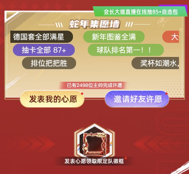不但有丰厚的奖励获取,完成任务必得限定队徽框还可以抽取85+自选包