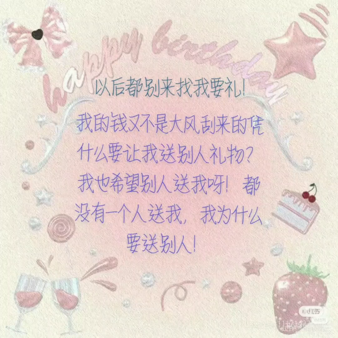 凭什么!就让我满足你们! 世界那么大!就偏偏找上我了是不!谁都别来找我要礼!我还希望有个人来送我呢!