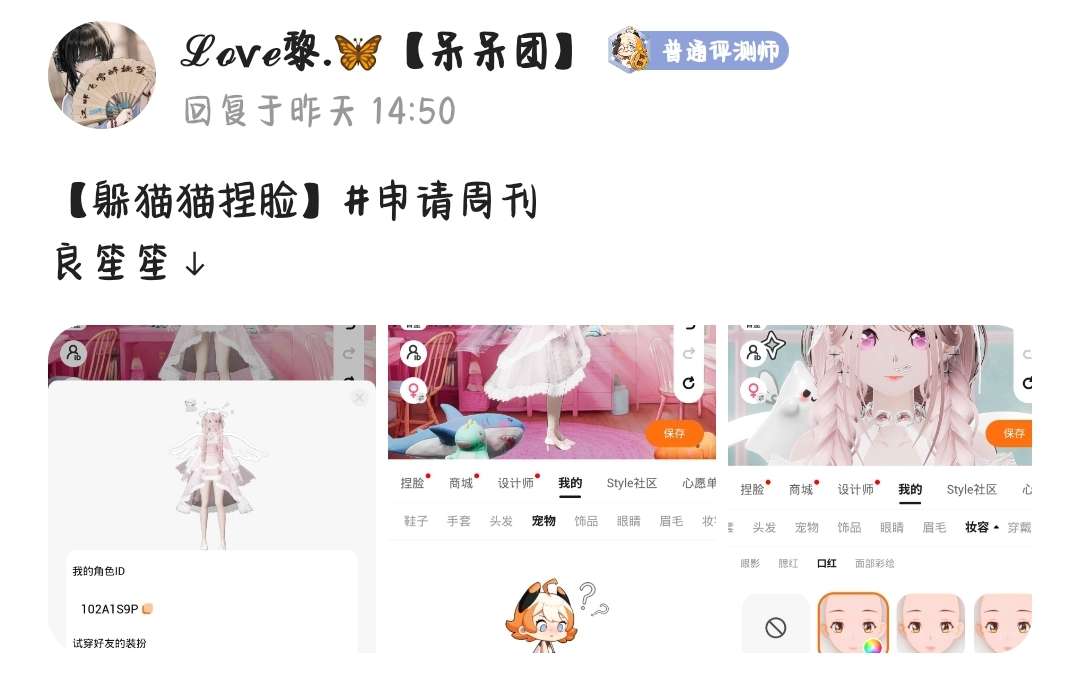 本期周刊分为:ᜊ捏脸板块ᜊ绘画板块ᜊ视频板块