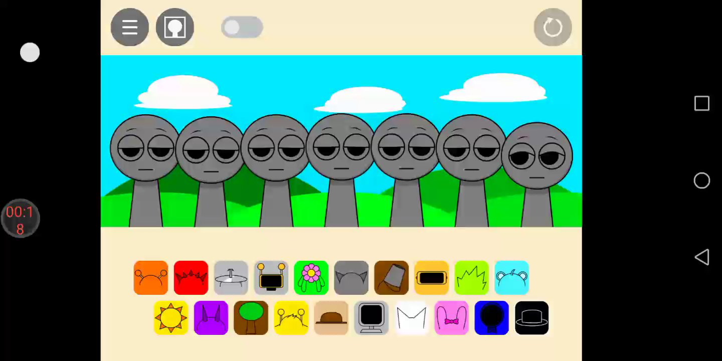 注意:1.节奏盒子(Sprunki-罪人版)为国外玩家自制,内含恐怖元素。 2.如何触发角色互动:在第一阶段,将【棕色帽子】角色放在【黄色天线】角色左边即可触发恋爱互动(如视频所示)。 3.如何进入第二阶段:放置【黑色帽子】角色。 ------ 节奏盒子是一款独具特色的音乐类游戏,让你能够自由挑战音乐关卡,还可以自行创造关卡供其他玩家进行尝试挑战。将代表不同声音的各种符号拖动到小人身上,便会混合出节奏感超强的各种音乐,涂鸦风格的画面和各种节奏感超强的音乐一定会让你喜欢。