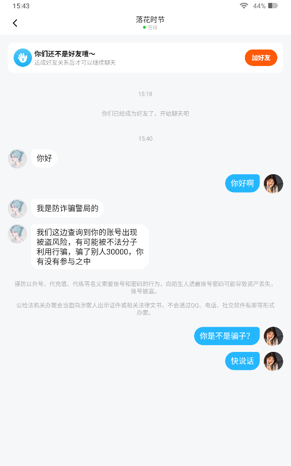 呃,大姐骗人骗到我头上了