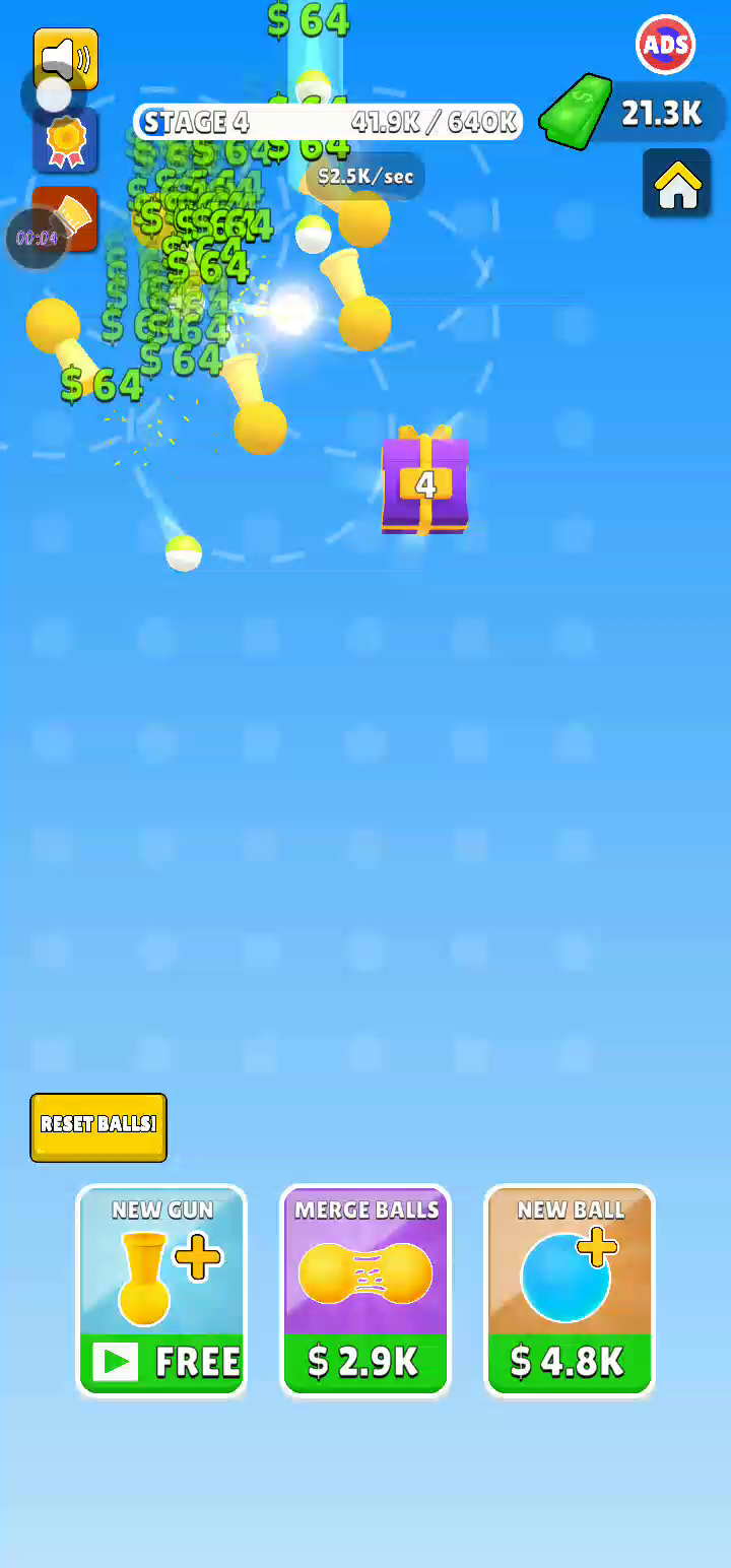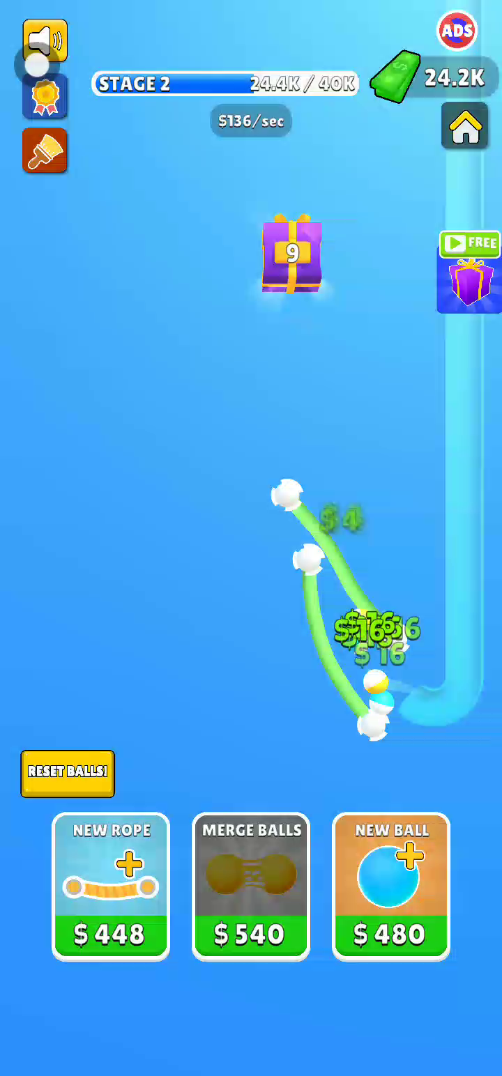 通过在橡胶上弹跳球来赚钱! 创建自己的循环以赚取更多, 添加和合并球以增加价值 请享用
