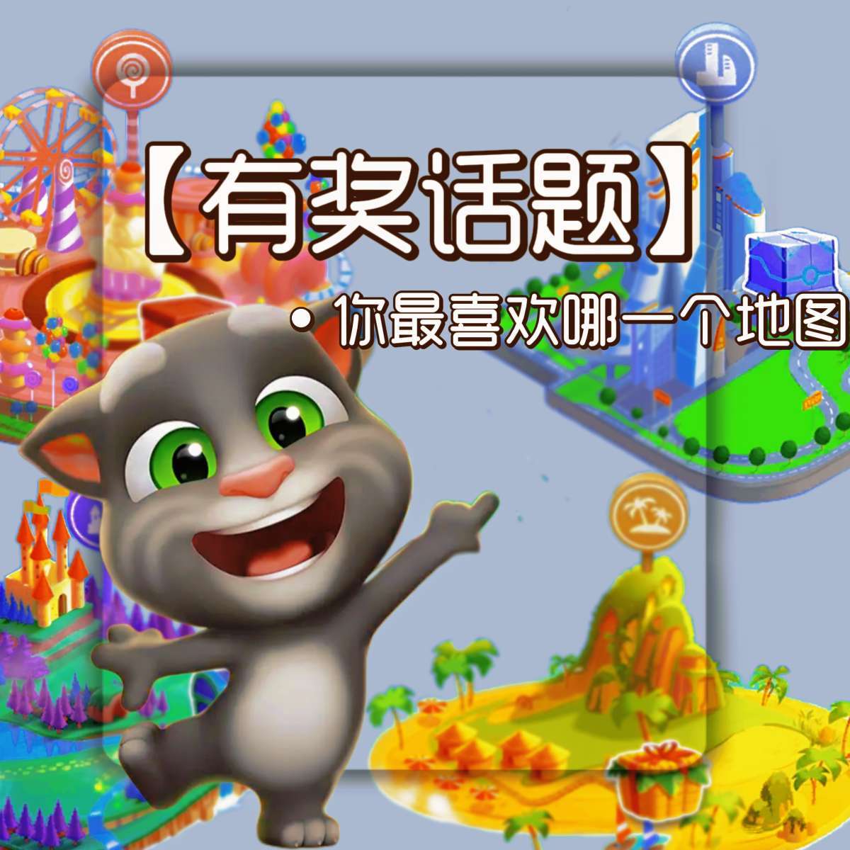 众所周知,在《我的汤姆猫2》中可以乘坐飞机去到四个不同的地图,有美好的热带小岛,神秘的魔法森林,充满科技感的未来城市和糖果世界,每一个地图都充满了乐趣,来和大家分享一下你最喜欢的一个吧!