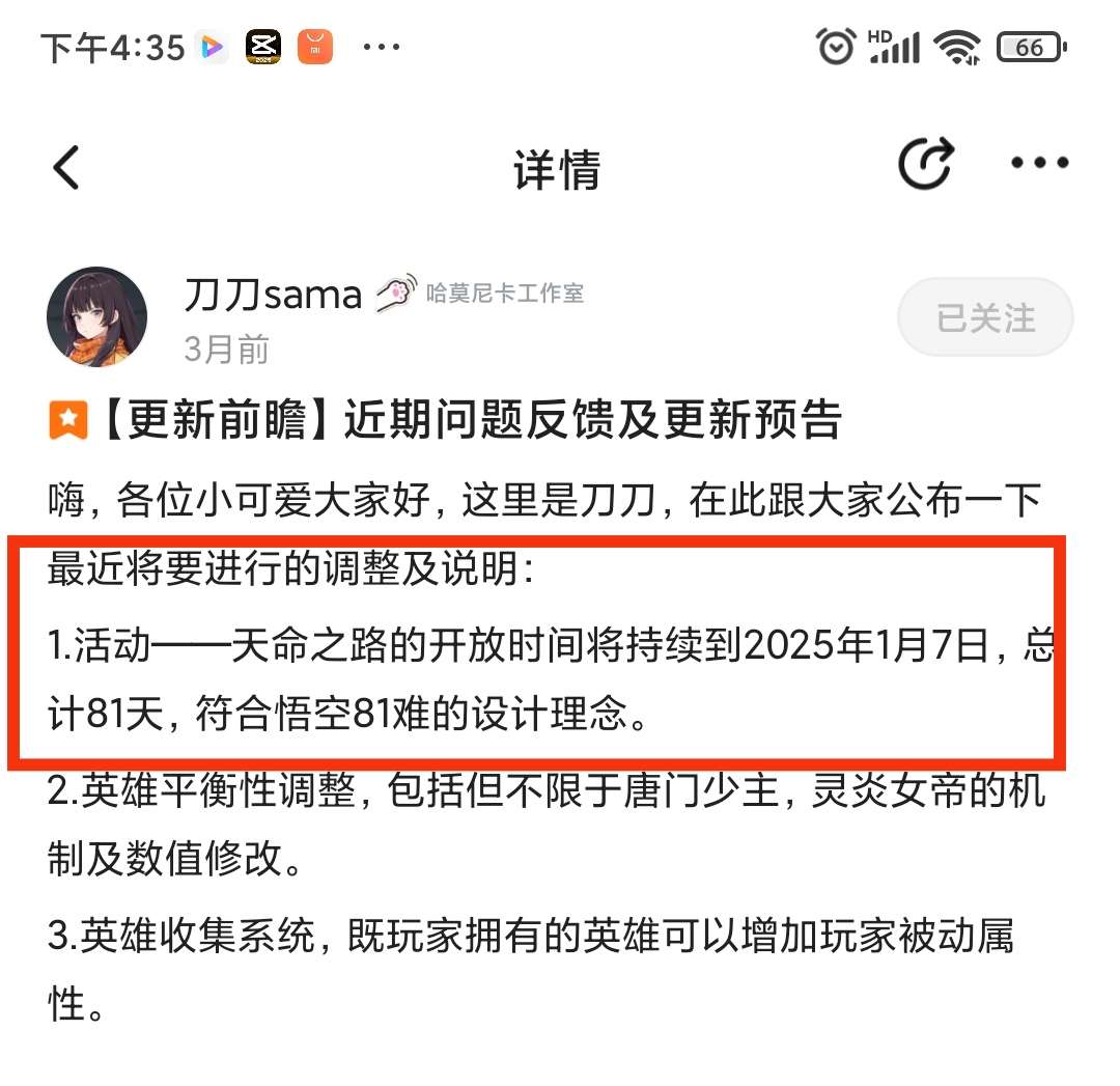 刀刀上次83难我跟你说过一次了你只ok就什么也不管了现在天命之路都33难了你说过的《1.活动——天命之路的开放时间将持续到2025年1月7日,总计81天,符合悟空81难的设计理念》