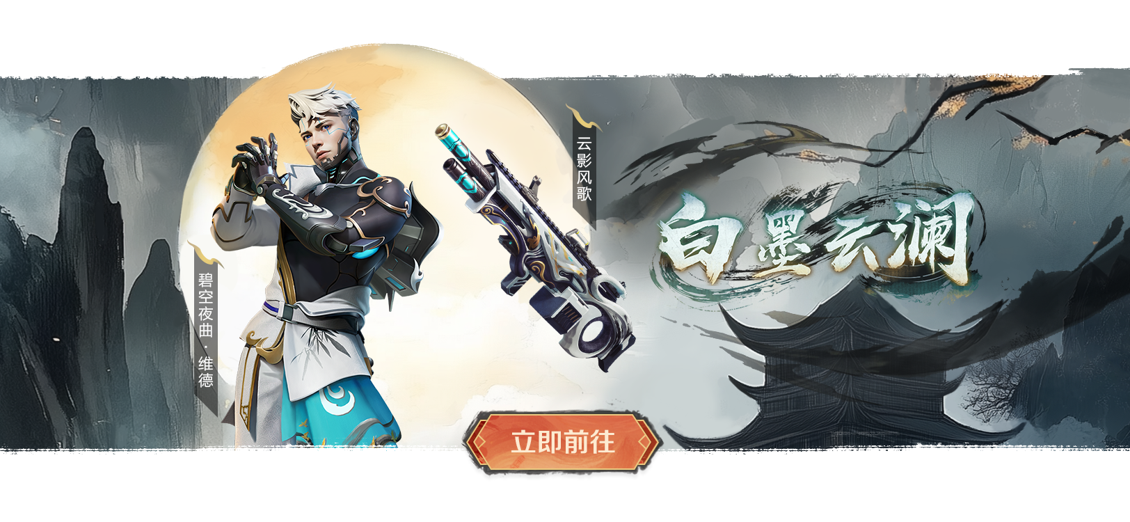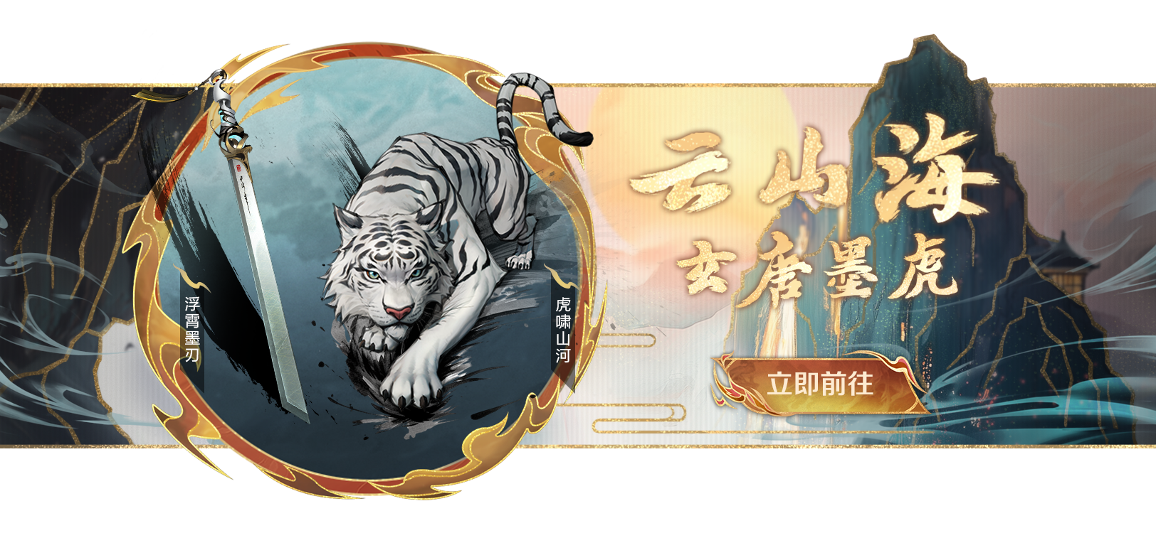 刃扬虎啸震,霄漫山海云。全新至宝登场!传说级武器【浮霄墨刃】、传说级滑翔器【虎啸山河】震撼来袭!