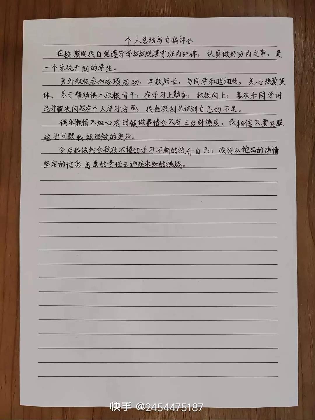 自我评价。