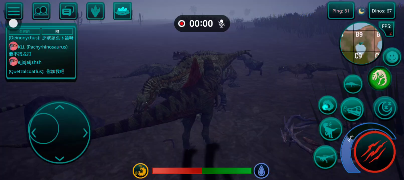 【更新:修复错误,提高稳定性】 恐龙岛是一款以侏罗纪世界为背景的逼真在线恐龙模拟器。 享受各种恐龙、逼真的图形和岛屿大地图。 选择你的恐龙并开始生存, 与您的朋友以及世界各地的玩家一起玩。 游戏中呈现了所有流行的恐龙,例如,从霸王龙、棘龙等食肉动物开始,到三角龙、甲龙等食草动物,游戏中有超过 23 种恐龙,包括飞行和游泳物种,以及所有恐龙。 如何玩诅咒岛 肉食性恐龙在线模拟器 - 恐龙生存和狩猎的游戏特色: 1.成长系统! 恐龙不会立即显得很大,需要照顾。 你需要培养他。你需要生存、寻找食物和饮料,并避免来自其他肉食恐龙(例如巨龙、重爪龙或暴龙)的潜在威胁。 2. 首先,玩家需要选择一种恐龙。 请记住 - 这是您个人的恐龙! 在恐龙游戏中,不仅有肉食性恐龙和草食性恐龙,还有会飞的恐龙,例如翼手龙,玩家可以与自己物种的食肉动物联合成群,以抵抗其他物种,最重要的是,生存! 3.食物提取,如果恐龙是掠食者,那么你需要杀死其他玩家的恐龙才能得到自己的食物,如果你是草食动物,那么食物就更容易了,你需要特殊的蕨类植物,你可以得到足够的他们! 地图上任意湖泊、水库都可以饮用。 4.文字聊天和好友系统。 您可以与世界各地的朋友和玩家聊天、制定策略、缔造和平等等。 并且还可以将玩家添加为好友,并加入到游戏的骨架中