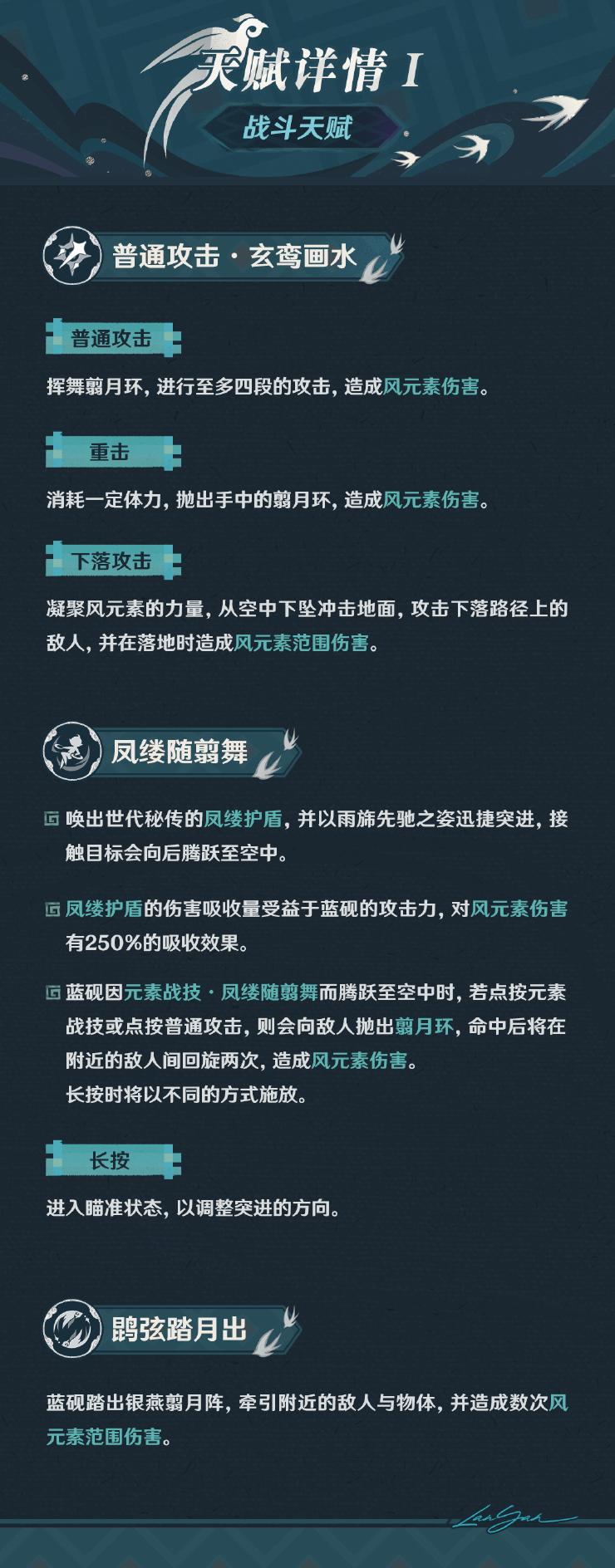 旅行者好呀!接下来为大家带来蓝砚的战斗相关信息,一起来看看吧~