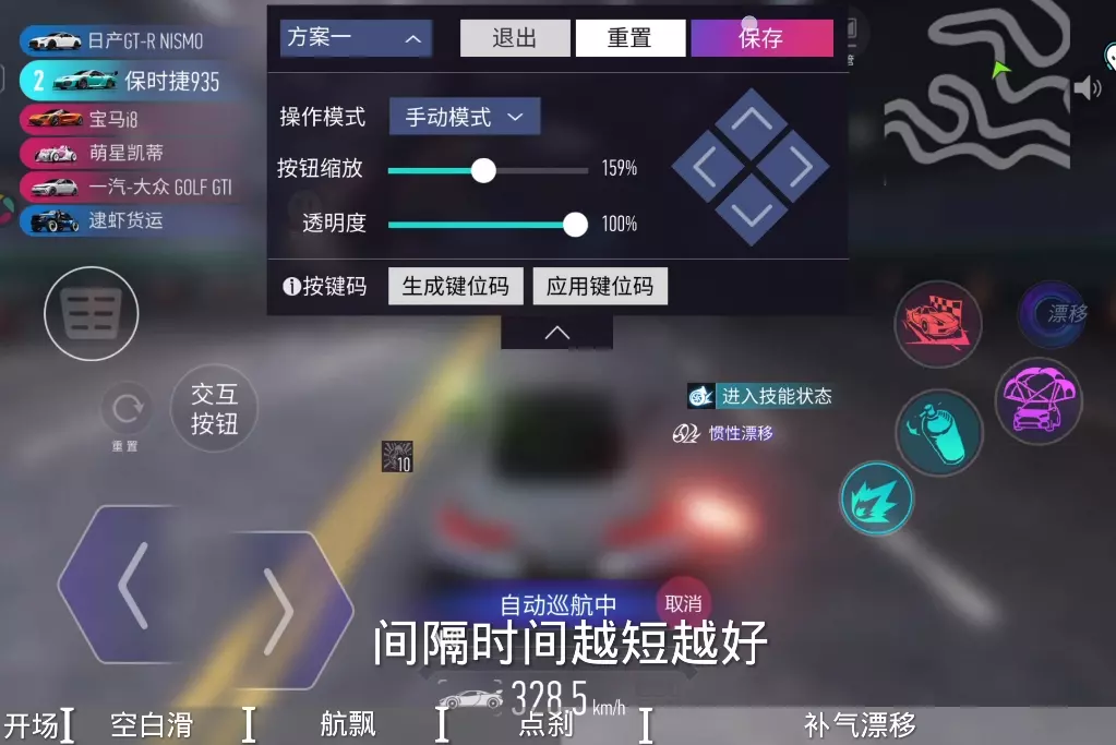 同时按【菜单】和【背包】,出现【save】时【长按】键位。调完后点击save