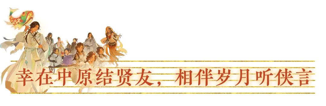 在华夏群星同屏闪耀的时刻,少侠们熟悉的江湖名士也为大家送来了真挚的祝福与问候!他们将与少侠一同穿越时空的桎梏,见证那些历经千年依旧令人心潮澎湃的瞬间,感悟华夏文明中蕴含的恒久的力量,传承延续千年的文化脉络,为少侠的江湖冒险共同画上浓墨重彩的一笔!
