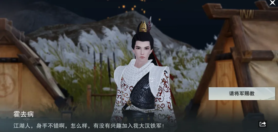 大汉铁军,将军直聘!霍去病对出身江湖、身手不凡的少侠充满了赞赏,向少侠发出了入营offer,挑战将军手下的三位勇士,就能赢得认可,体验以驱逐匈奴、守护家国为使命的大汉军营咯!