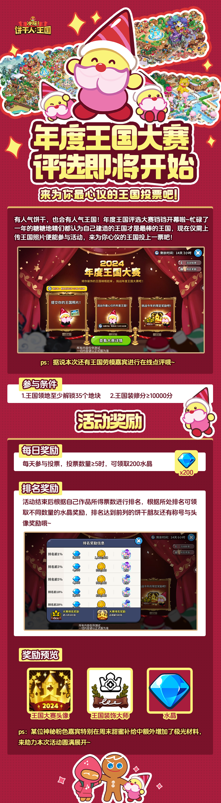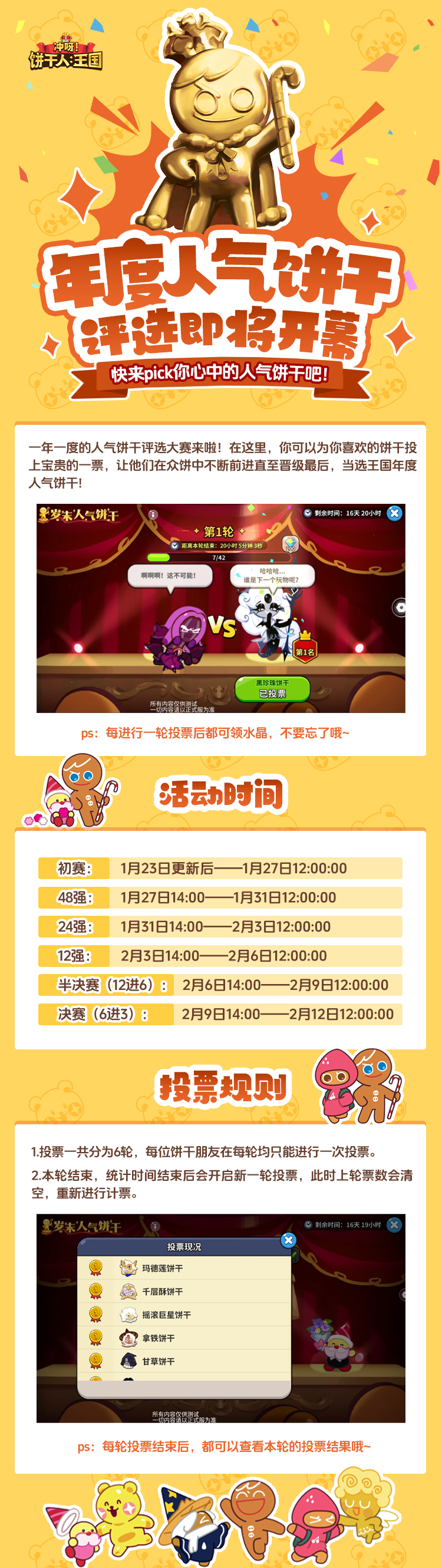 1月23日更新后,岁末人气饼干、年度王国评选大赛即将拉开帷幕,究竟谁将晋级至最后?