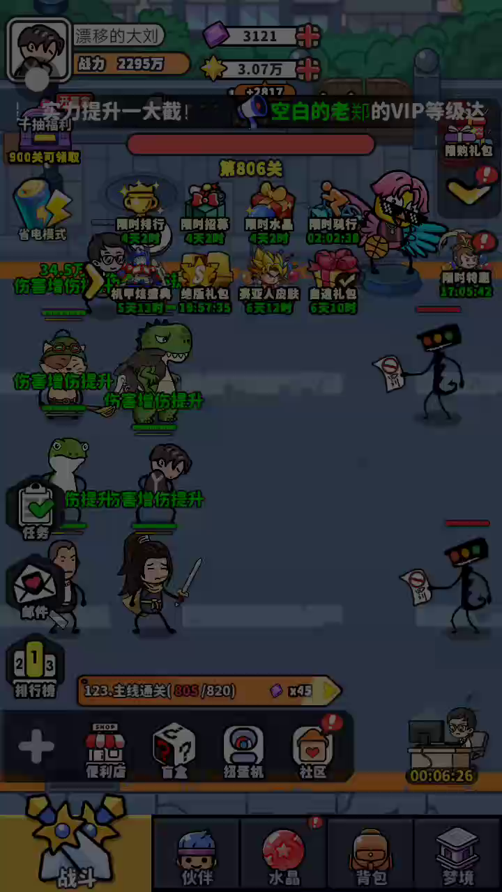 无限大宝石是一款考验手速的英雄战斗闯关游戏。玩家在游戏中扮演打工人的角色,通过抽卡招募英雄,点击屏幕释放攻击,打败怪物。游戏中有许多人们熟悉的英雄。还可以爬塔,与其他玩家争夺排行榜名次。下线后也会伴有一段时间的挂机收益,非常休闲解压。
