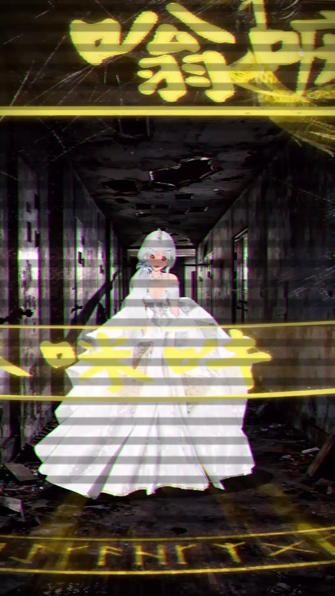 “荒废走廊的不速之客,裙摆扬起时,符咒与尘埃共舞。”