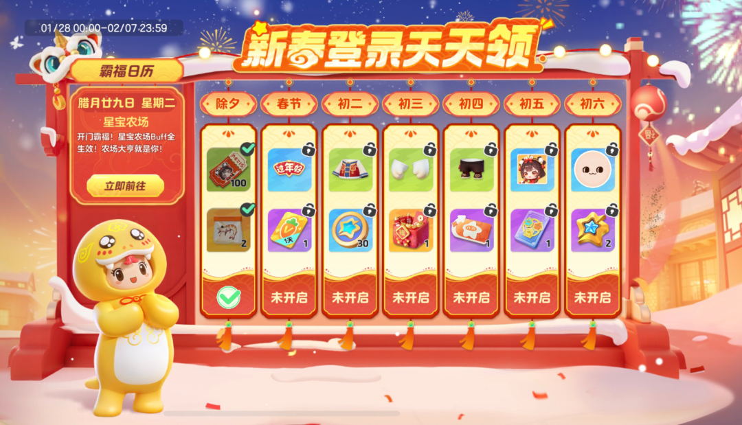 新春期间每日登录游戏签到