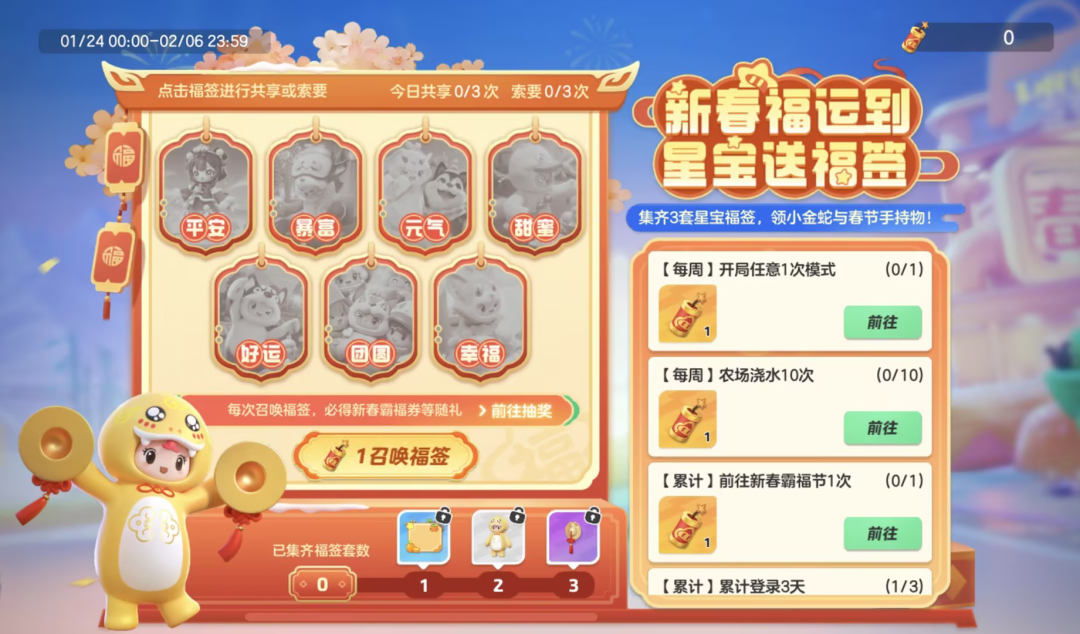 集齐1~3套新年福运签即可依次获得