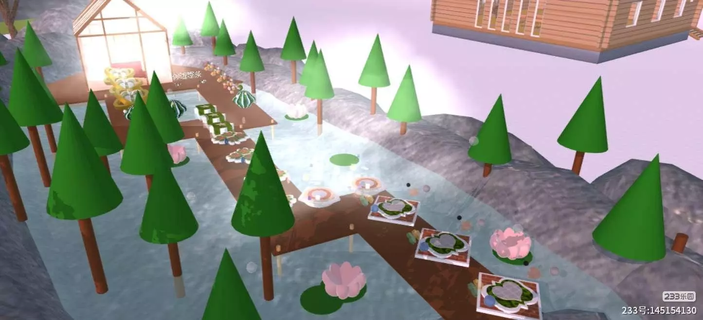 建筑位置我有想过好多地方,就例如:露营地、港口、公园……不过最重要的一点还是森林是比较神秘的🙋🏻♀️,最好建在天然雾气特效的位置比较好🌝必竟是跑酷就应该用面积大的温泉♨,所以我就没打算用爱心屋的温泉💦周围我是用树木、荷花、荷叶装饰的,因为外表比较单调😲🎨