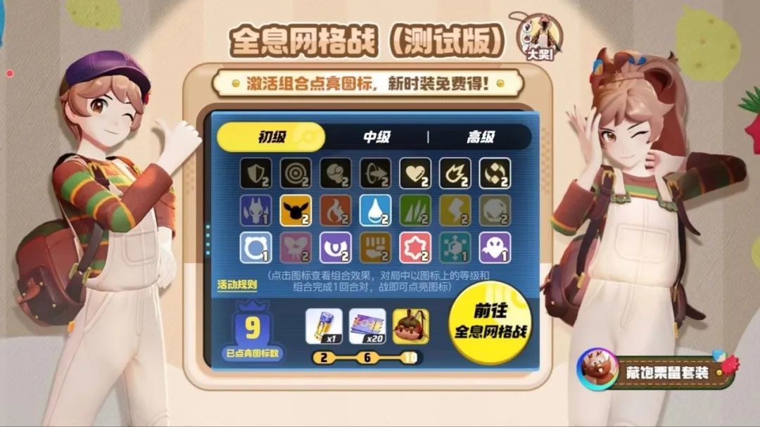 ● 参与全息网格战(测试版)玩法,激活组合点亮图标,可免费领取训练家时装-藏饱栗鼠套装!