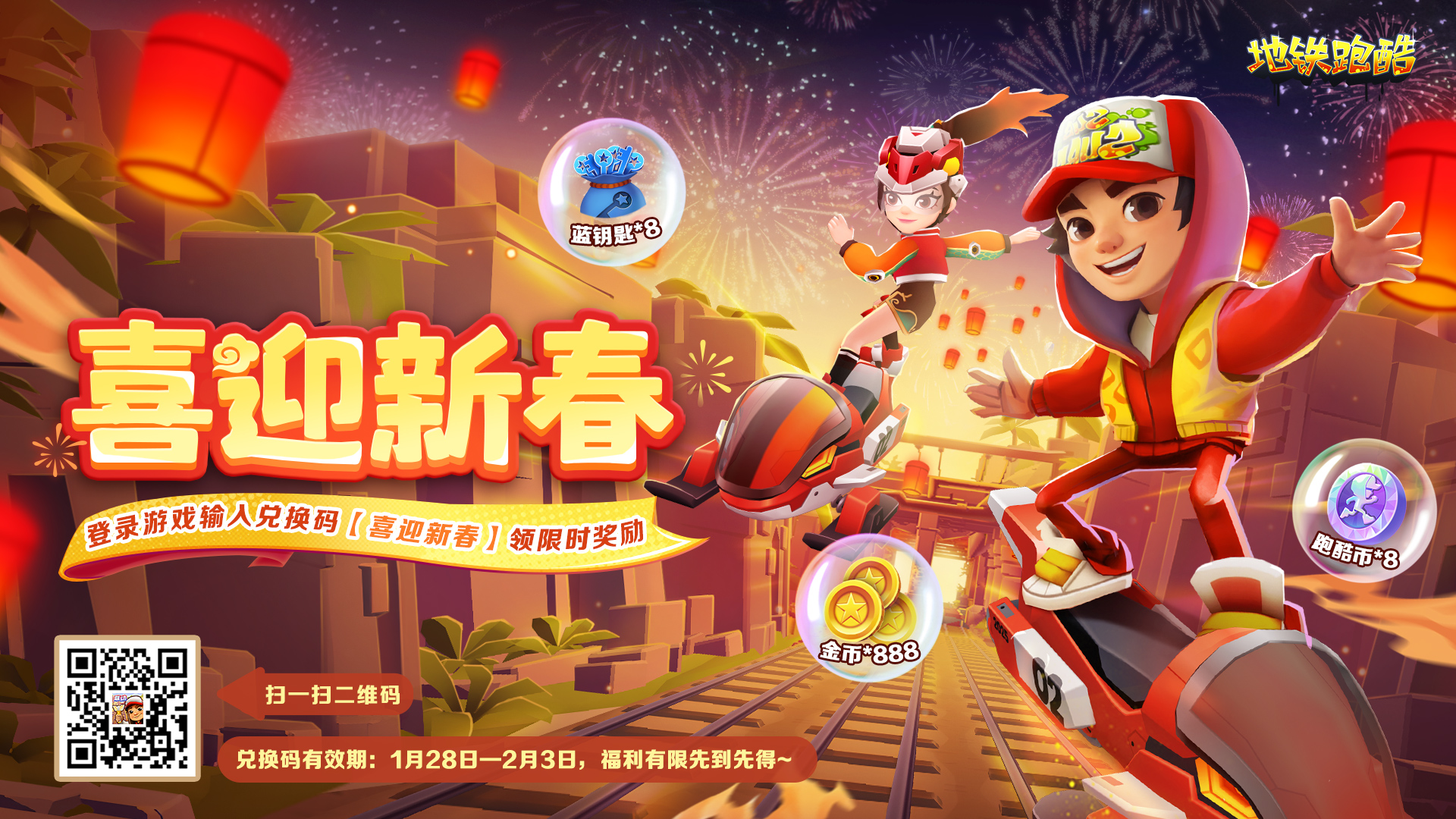 ③兑换码内容:蓝钥匙×8+跑酷币×8+金币×888