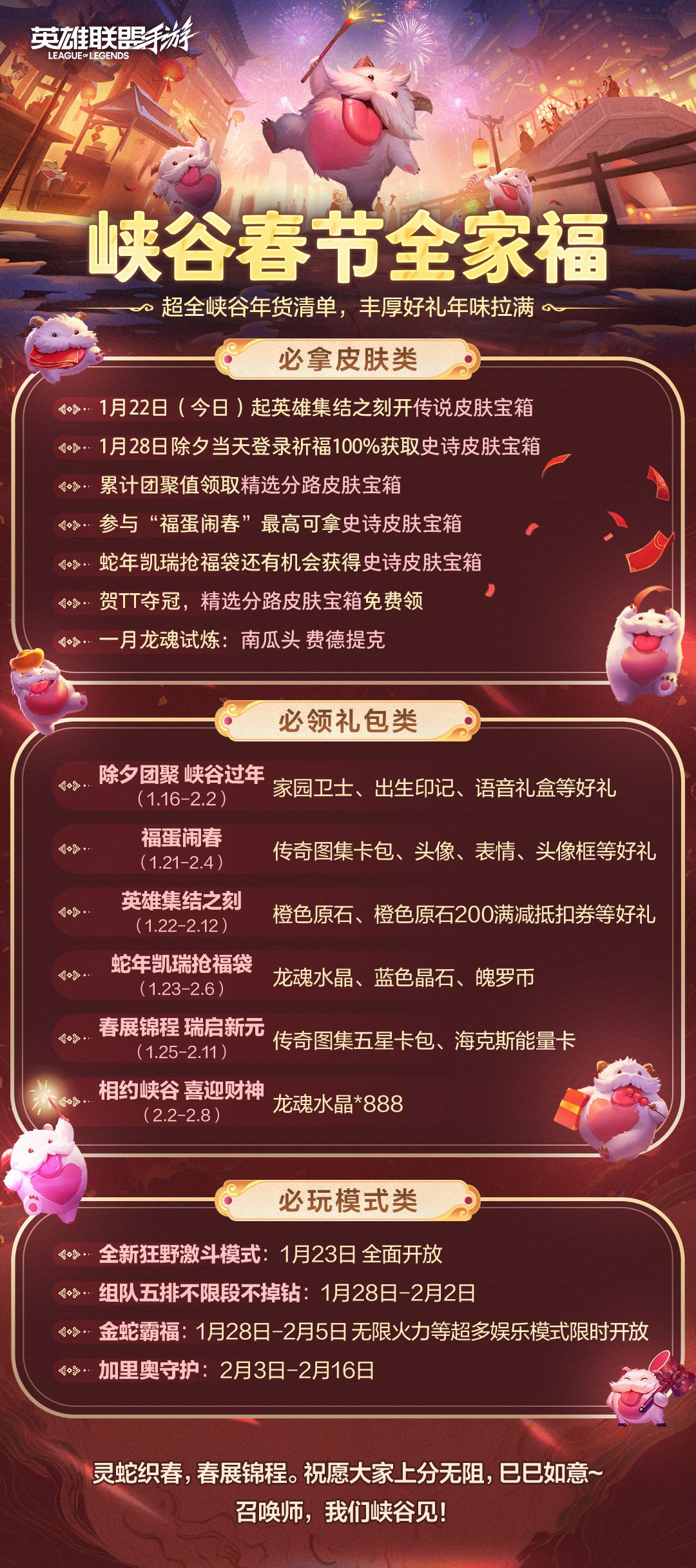 我们真心希望通过这一系列福利,能让召唤师们感受到我们满满的诚意与祝福。再次祝愿大家新春快乐,阖家幸福,在游戏中尽享欢乐时光!