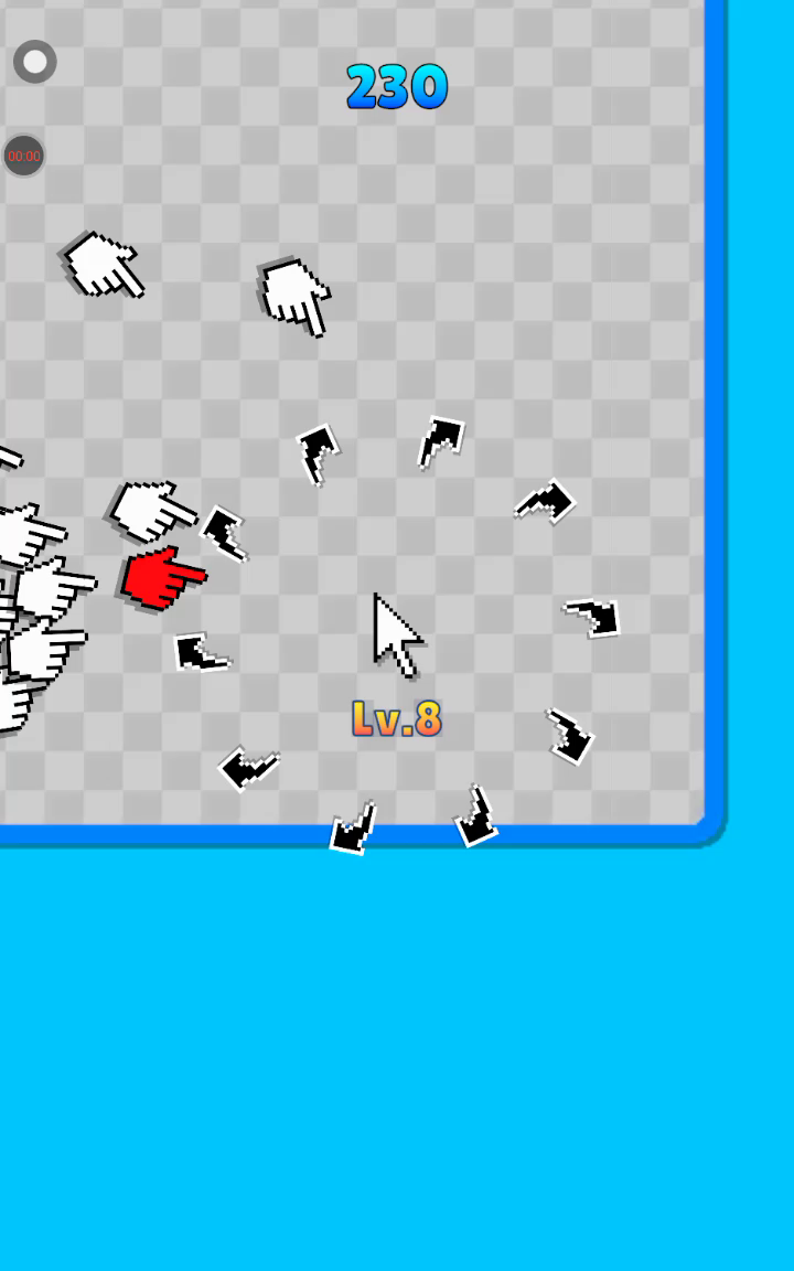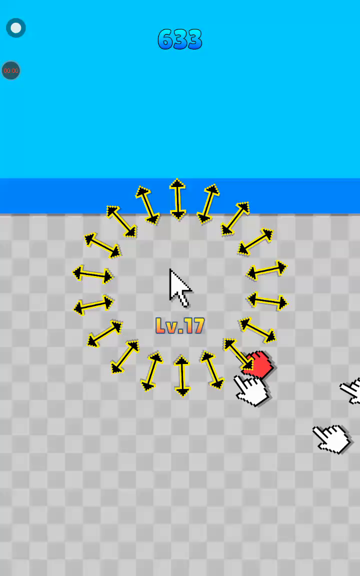 滑动屏幕移动光标。 围绕玩家光标旋转的武器可以用来击打手形敌人以击败它。 可以通过拾取敌人掉落的物品来增强武器。 当敌人击中玩家时,武器会减少,当所有武器消失时游戏结束。 小心大型敌人,因为它们非常强大。 享受光标战斗
