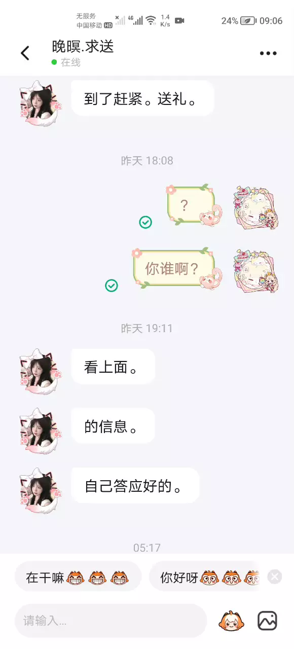 有人认识她吗?怎么一上来就找我要礼物啊?