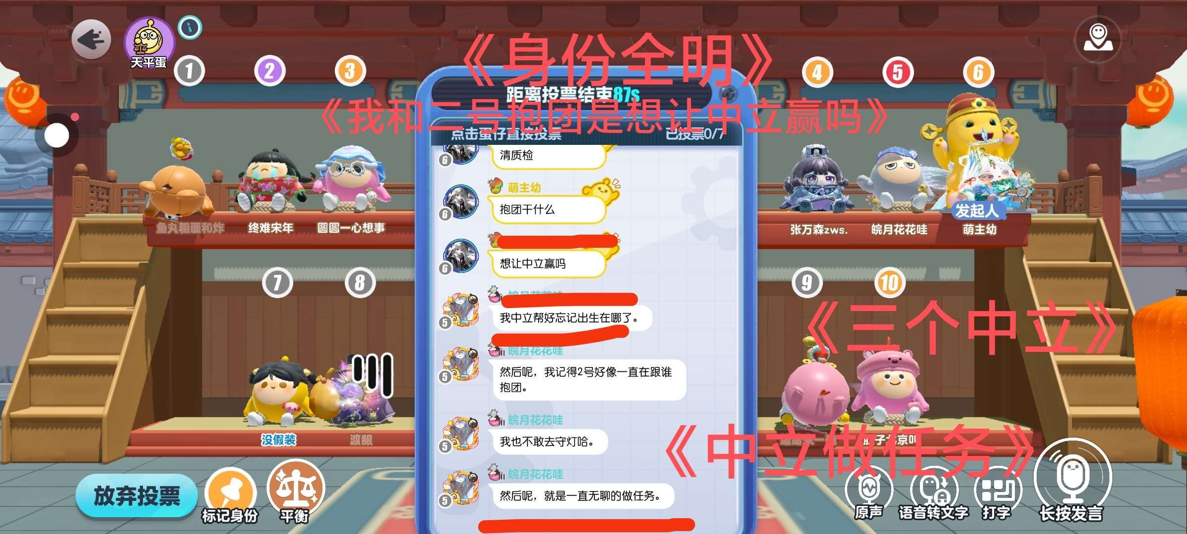 《三个中立》《两个中立抱团难道想让中立赢》《身份全明》《中立做任务》