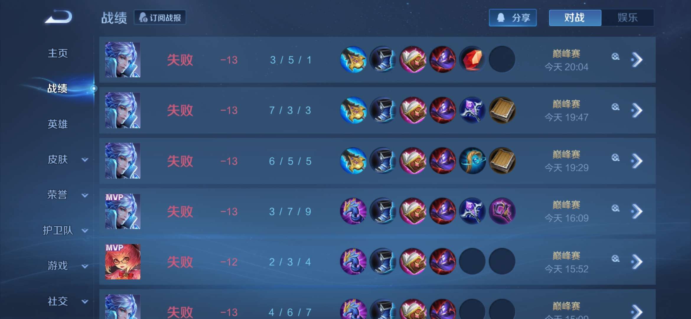 真的就不该充,充了一直连跪,一天给我掉了十一颗星😡