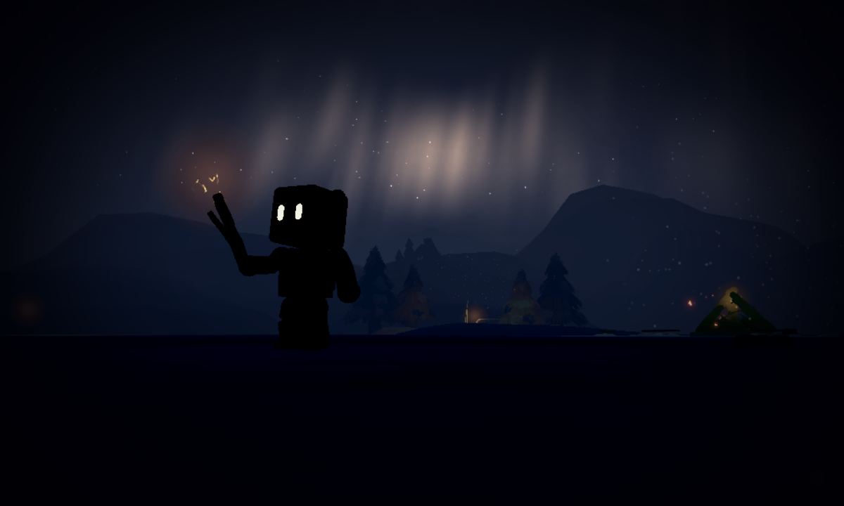 在一个极光的晚上,有个人有个火把他孤独的在这里