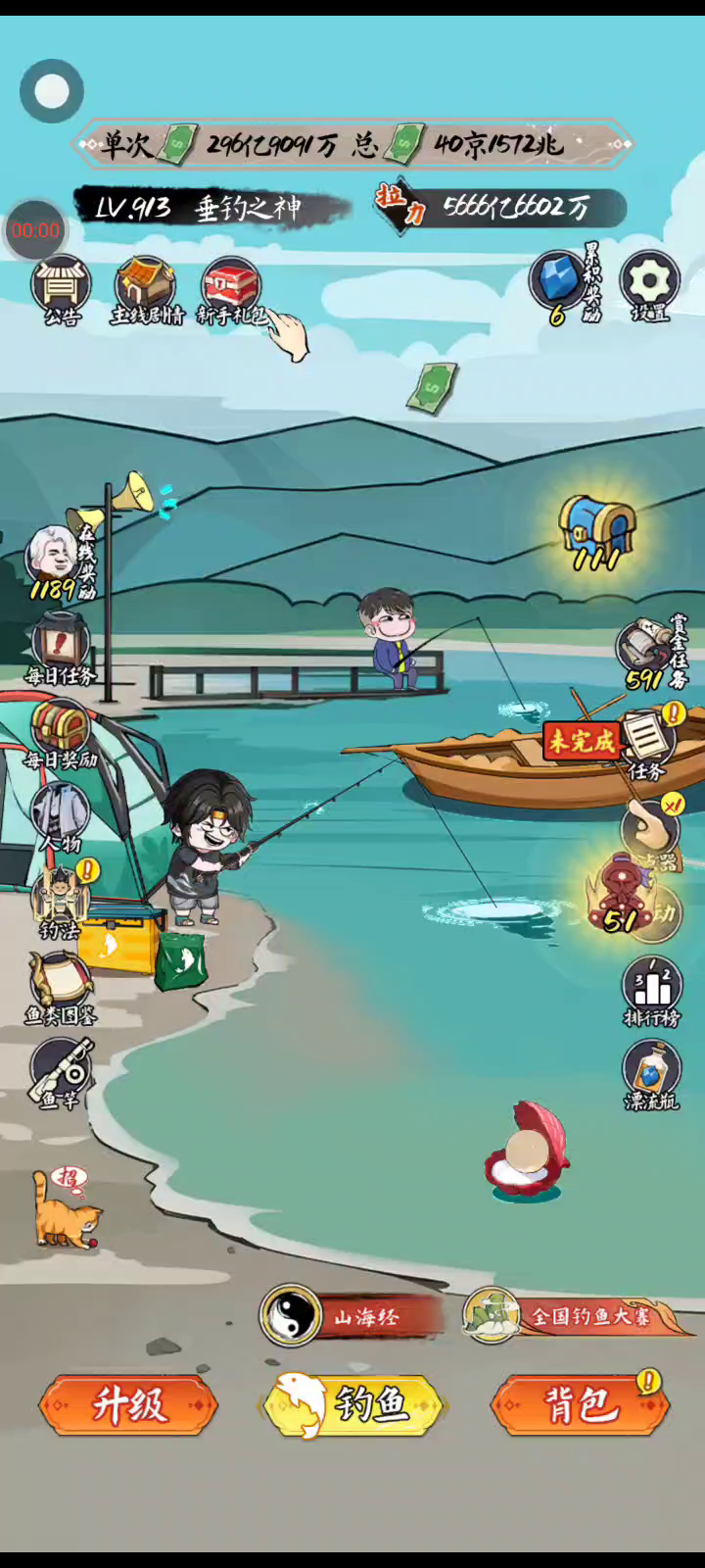 《小鱼人战争》是一款轻松休闲的放置钓鱼小游戏 游戏内有各种各样的鱼等你来钓 你需要通过不断提升自己的等级,学习更多的钓鱼秘籍才能把珍惜的,远古的,超自然的大鱼钓起来放进自己的鱼塘里。 这真实一款超级爽完的钓鱼游戏,有趣而且很精彩哦~~~!!!
