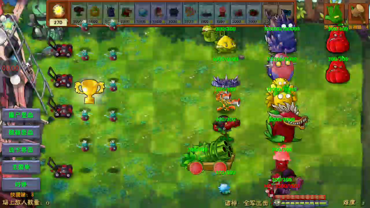 困难五,全军出击轻松拿下(有些植物被打掉了,所以说没有最高级)