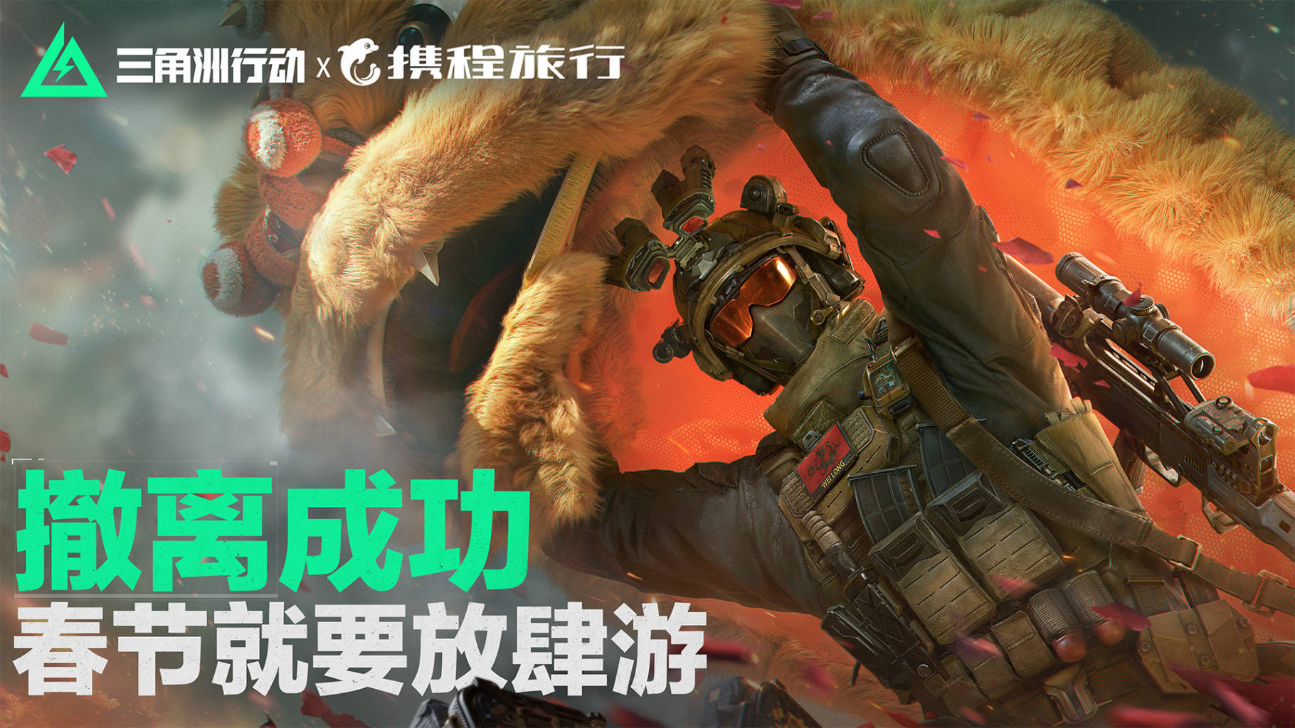 三角洲行动,新年正当红!解锁花样撤离方式,这个春节,我们就要放肆玩!洲宝携手@携程和@一条,祝各位干员,游戏内外都“撤离成功”,享受假期!