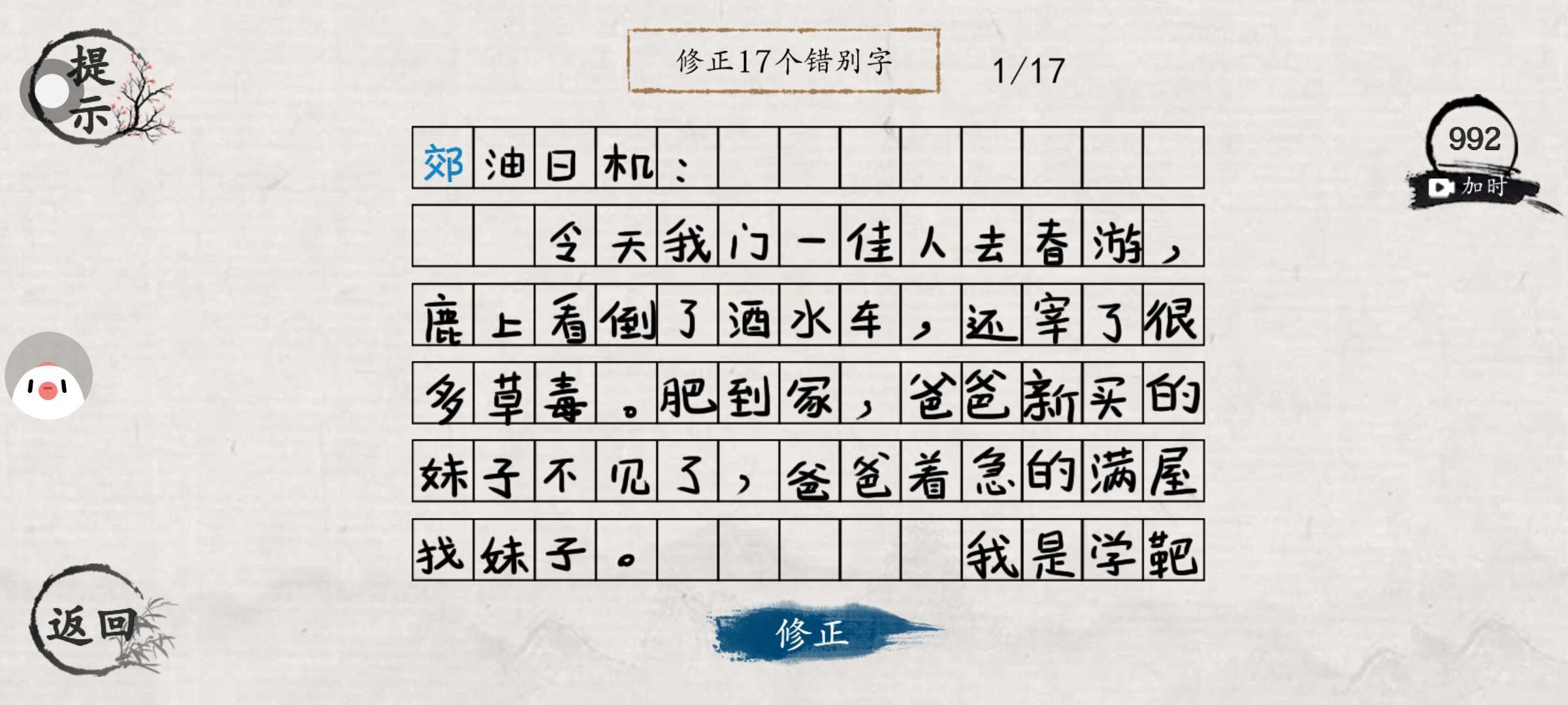 以找错字为主要玩法,在玩的时候可以补充知识,顺便训练眼力劲。但是不太好玩,有的比较费眼