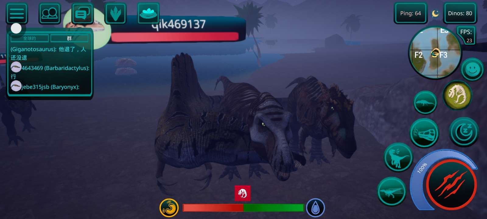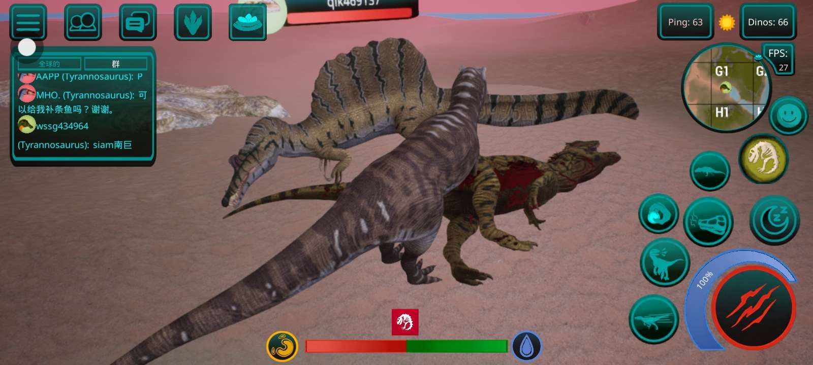 拉了个小棘龙,后来他长大了我就换暴龙了,另外两图分别是友好的南巨和出生的南巨的区别