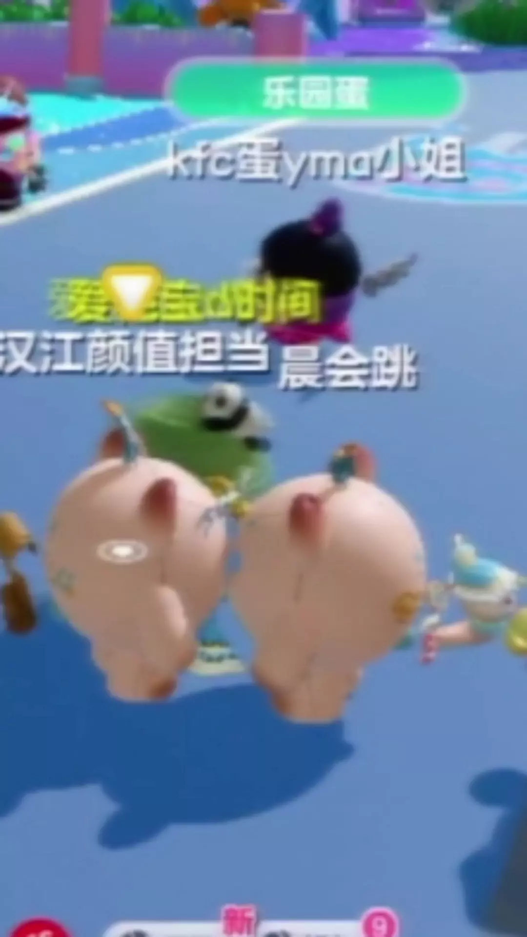 跟朋友一起贴贴。黄色名字的绿蛋走过