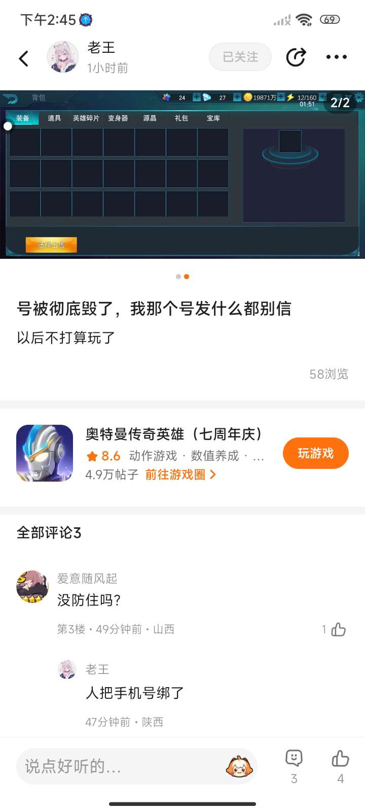 是谁把老王的号给盗了,人家玩了怎么久你就被你毁了,不要被我抓住盗号犭句