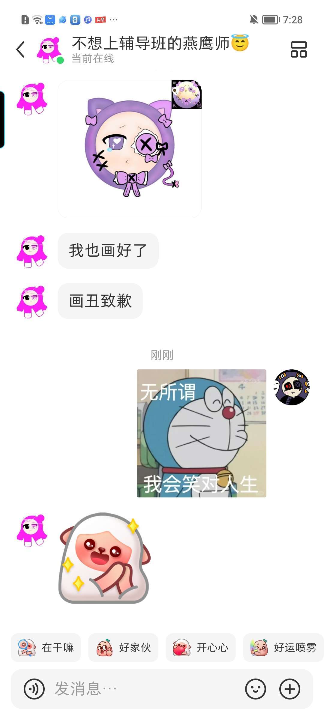 呃呃呃也是收到互绘了,虽然她画的有点丑但是我能接受😇