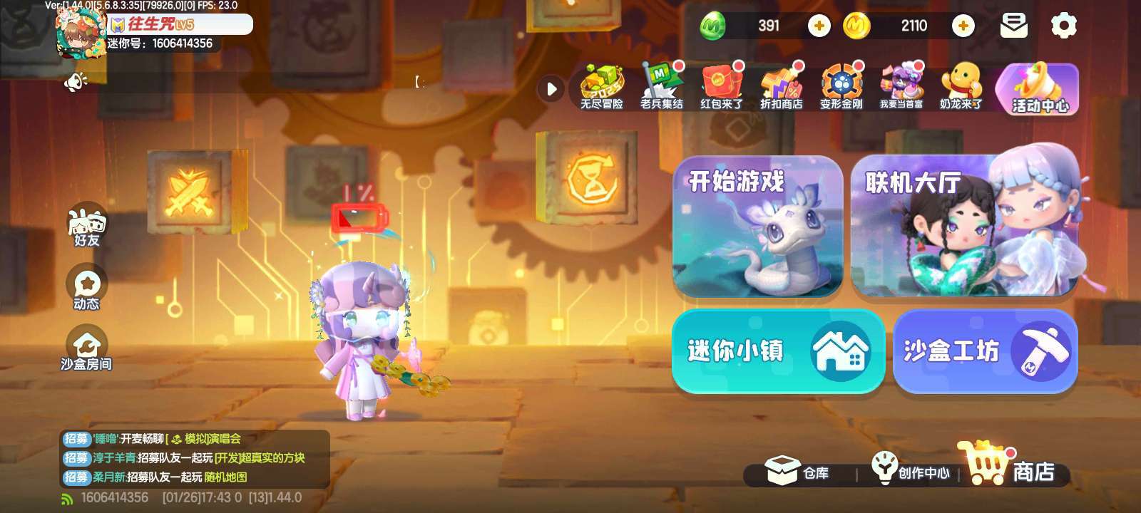 交友a 没朋友 第1天玩迷你世界