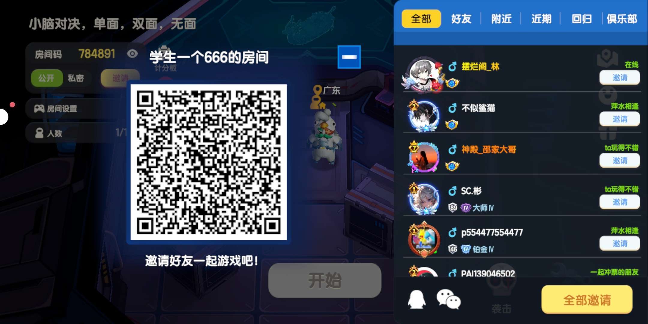 扫码来玩,小脑对决,单面,双面,无面