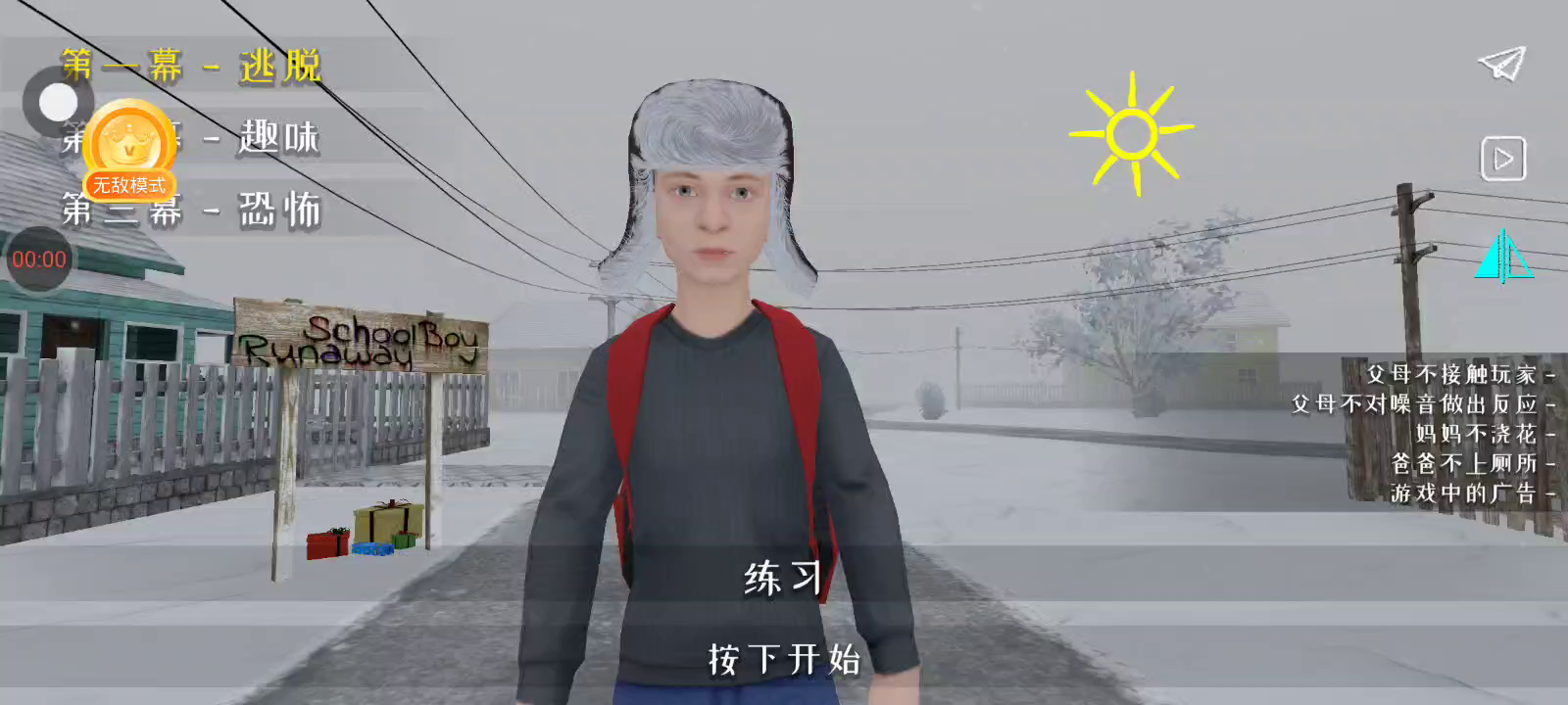 12月30日最新版本0.453已更新~ 【更新内容] 新模式:水平镜像模式。 错误修复。 【如何设置中文】 进入游戏后-点击右上角暂停-点击中间的设置按钮-点击English-选择中文-即可设置中文 游戏目前只解锁第一章~后续章节正在开发中~ “啊,你这个流氓!快点学习!”父母这么说着并把你软禁起来。试着比你的父母更聪明,找到与你的朋友一起出去玩的方法。 沉浸在一个因在学校成绩不好而受到父母惩罚的小学生的角色中,尝试在不被父母发现的情况下逃出家门。 关键机制: - 3D 第一人称游戏。 - 潜行,隐藏,不要被抓住,也不要发出声音! - 拼图,解决谜题,寻找物品来计划你的逃生。 - 小心,父母可能会注意到打开的柜子和门。