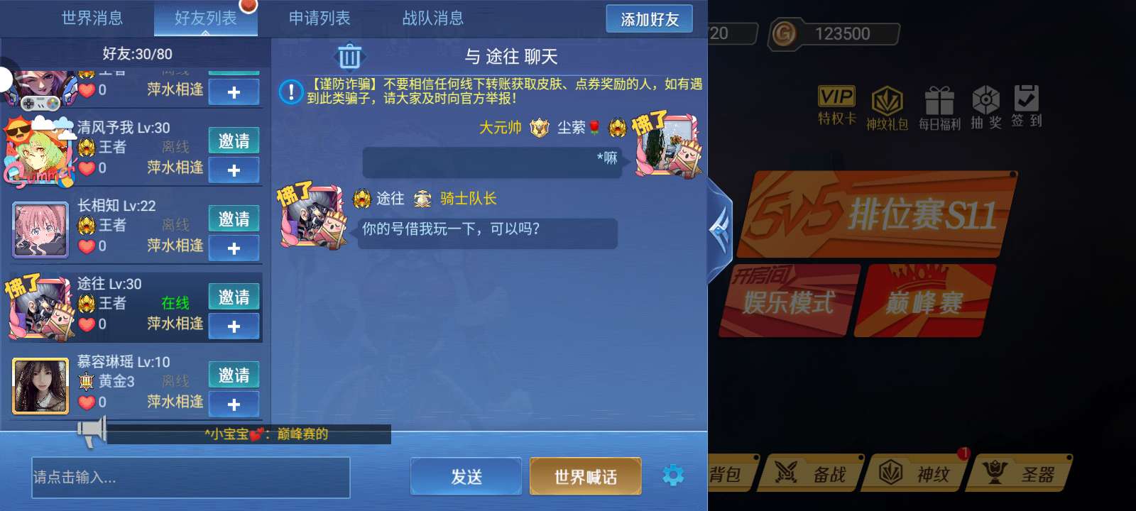 骗子挺多的哈。不是搁这骗号就是骗配饰,有意思吗?天天搁这骗,真无聊,谁会给你啊?不要再骚扰别人,行吗