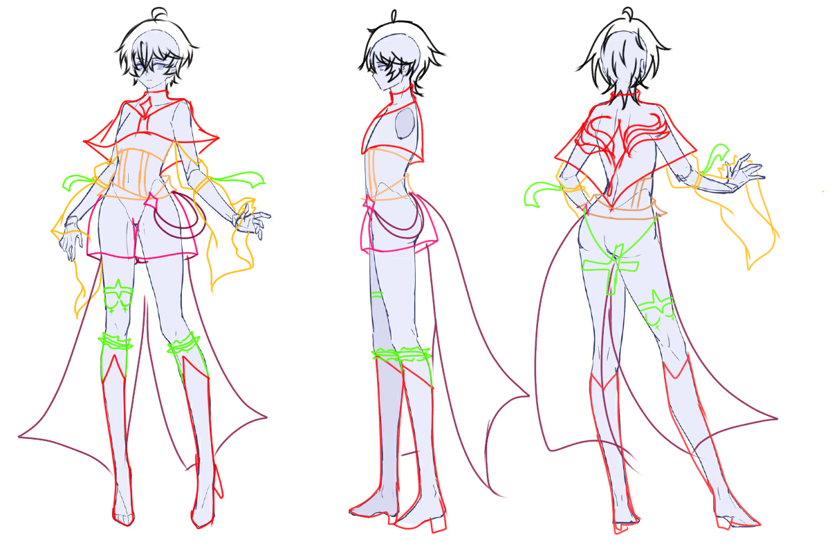 草稿,给大儿子画的立绘三视图